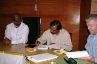 AMU Registrar Pro. Jaleel (centre) signs MoU as Prof PK Abdul Aziz and Dr. Gerry look on