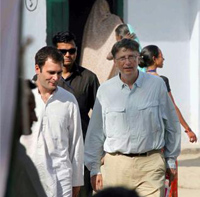 Congress General Secretary Rahul Gandhi with Microsoft Chairman Bill Gates at an eye screening camp in Amethi on Tuesday, May 11, 2010