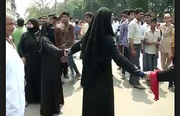 Alleging police inaction, nearly 300 of Shahnawaz's family members, relatives and neighbours, including burkha-clad women, sat on protest on the busy road demanding action against the accused, who they alleged were local builders.