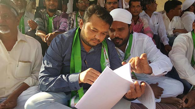 [Janata Dal (S) President Bulund Iqbal and Mustaqeem Dignity after the Janata Dal (S) activists ended their 05-day fast unto death against corruption in Malegaon Municipal Corporation on Friday December 18, 2015. (Photo: ummid.com)]