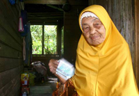 Malaysian woman Wook Kundor, 108, sits outside her house in Malaysia's northern Kuala Terengganu state.