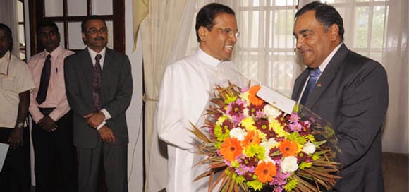 [Indian envoy to Sri Lanka was first to greet Maithripala Sirisena after his victory.]