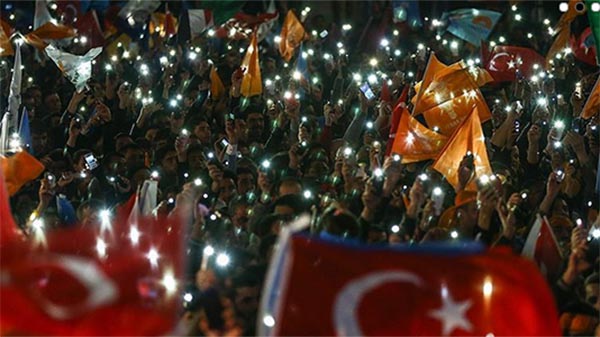 Later, he returned to capital Ankara to give a victory address outside the party’s headquarters.