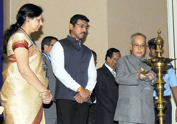 [President Pranab Mukherjee lighting the lamp to inaugurate the ceremony for commemoration of National Press Day and conferring of National Awards for Excellence in Journalism - 2015, in New on November 16, 2015. ]
