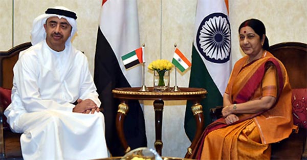 External Affairs Minister Sushma Swaraj and UAE Foreign Minister Sheikh Abdullah Bin Zayed Al-Nahyan inaugurated the India-UAE Joint Business Council after they held the 11th session of the India-UAE Joint Commission Meeting for Technical and Economical Cooperation here.