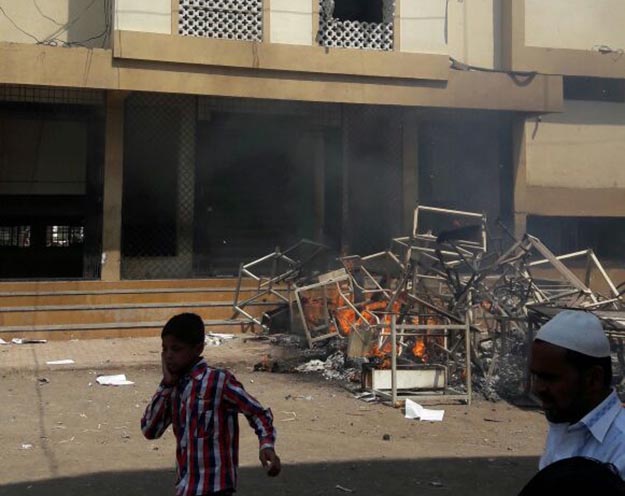 Smoke could be seen coming out of the two school buildings all through the day. There are also reports that some teachers are also attacked, and school records and computers are also destroyed and burnt by the violent mob.