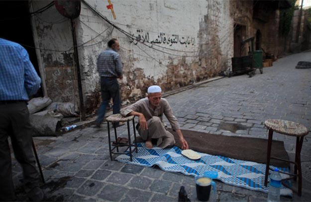 [A Syrian man waits to break his fast in Aleppo, Syria. (Al Jazeera Photo)]