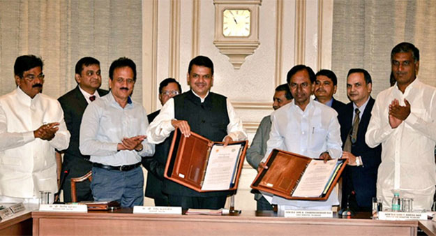 Telangana Chief Minister K. Chandrasekhar Rao and his Maharashtra counterpart Devendra Fadnavis in Mumbai signed five MoUs, which will cover both the ongoing and new projects.
