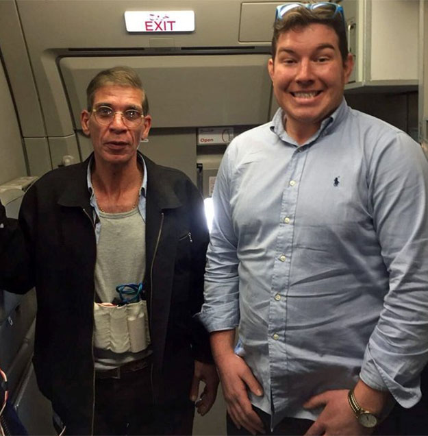 [Benjamin Innes (right) with the hijacker Seif El Din Mustafa. (Photo: Twitter)]